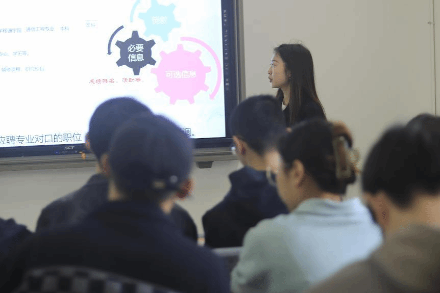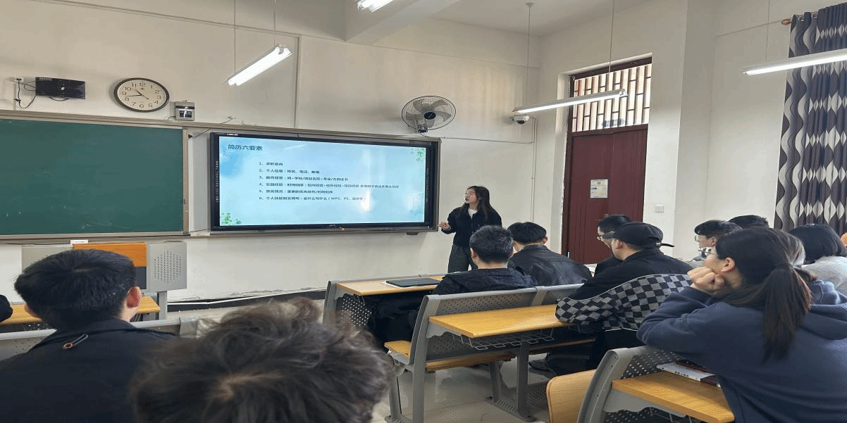 活动伊始,杨老师为在场同学们讲解了一份好的简历能为同学们面试带来什么意想不到的效果。接着,杨老师详细讲解了简历的六要素——求职意向、个人信息、教育背景、实践经验、获奖情况、个人技能。同时告诉同学们要想简历能够进入面试官的法眼,这几个方面必须得要贴切该公司、该岗位,做到人岗匹配。
