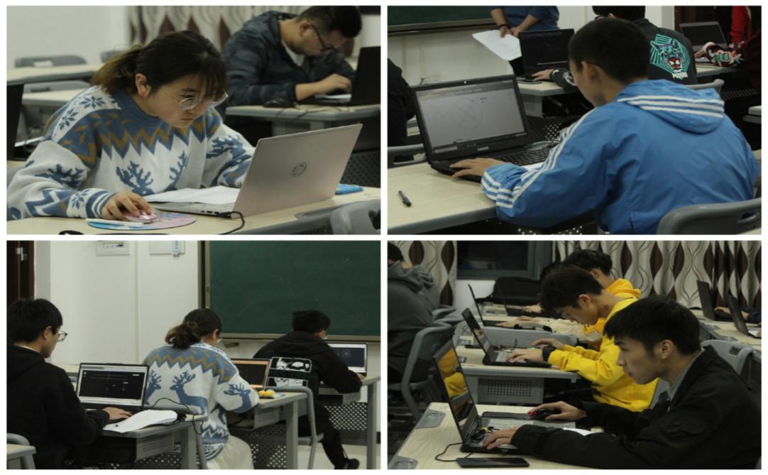 比赛开始,选手们沉着冷静地审视题目及要求,开始对图形进行构思。随着设计平面上一根根线条逐渐构架起来,一个又一个图形呈现出来,选手们对于CAD操作的熟练度便展现了出来。有的选手更是精益求精,一遍又一遍地对线条进行调整,以达到最准确的图形制作标准直到比赛的最后一刻。随后蓝老师进行现场评分,并当面讲解参赛同学绘图错误点和不规范之处,最后面向所有同学统一讲解试题难点及正确的绘图思路。