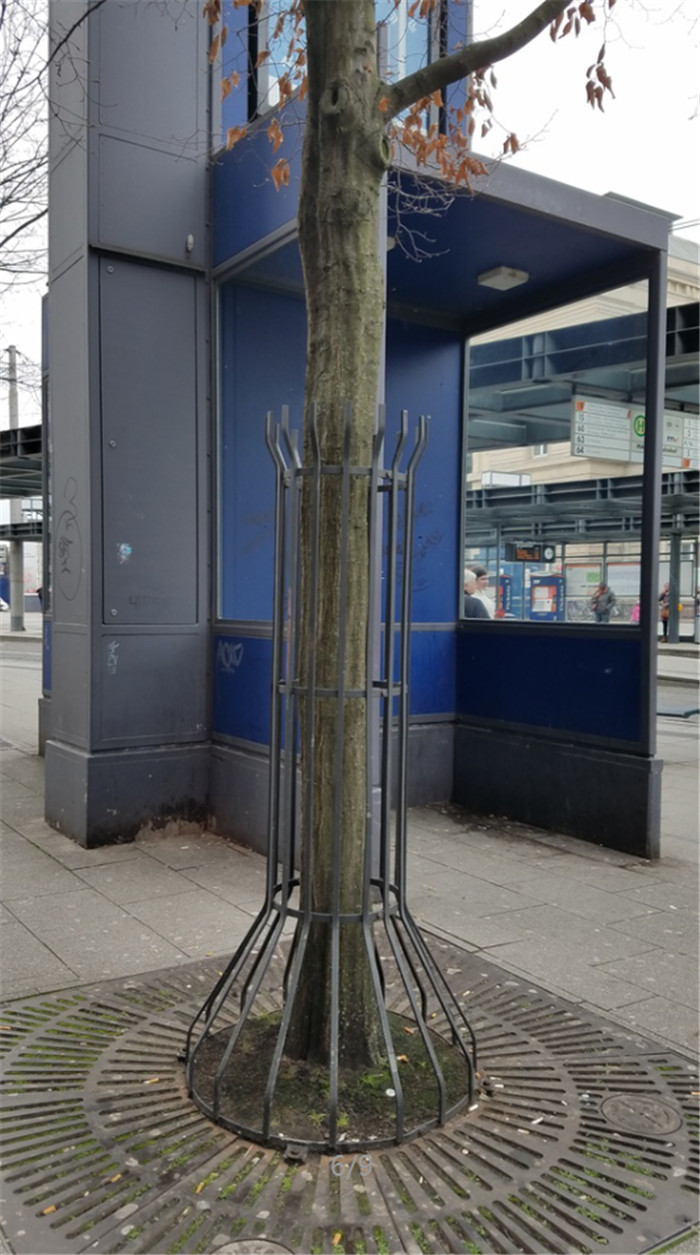 (铁制的圆形栅栏用来保护行道树免遭人为破坏)