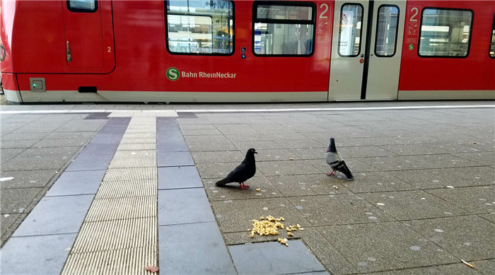今天周末去海德堡附近一座城市曼海姆游览,刚一下火车走出站台,在出站口的位置,就看到两只鸽子在门口边上来回游荡,多少有些闲庭信步的样子,而地上专门有人摆放了一堆适合鸽子的食物。没人去刻意惊扰它们,更没人去踩踏那些个食物,好像这个地方既是熙熙攘攘,人来人往的繁忙车站,又是鸽子们自由行走、觅食散步的好去处。俨然一副井水不犯河水的派头,这地盘也有哥们我的一半!半天游览下来,发现这样的场景在曼海姆城区的各个广场、街道、角落无处不在,好一派人与自然和谐共生的画面。也许,爱护鸽子就是爱护人类自己,懂得人与自然和谐共生的道理,也就懂得了人类生存的基本法则,毕竟这个地球上既有人类,也有动物,皮之不存,毛将焉附?