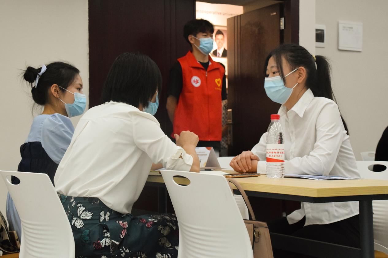 (图为我校应届毕业生们面试西部计划志愿者现场图片)