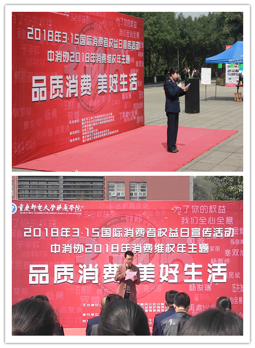 2018年3月15日是“国际消费者权益日”。由合阳工商所、重庆邮电大学移通学院学生会权益部与青年志愿者联合会青年信用体系建设办公室共同举办了“品质消费,美好生活” 3·15国际消费者权益日暨青年信用体系建设推广活动,本次活动的开展,扩大了消费者权益保护和青年信用体系建设规划的宣传,在学校及周边环境内的营造了崇尚诚信、倡导诚信的良好氛围,促进了商家和学生消费者之间的相互信任,提高了商家诚的诚信意识,为建设诚信校园,达到品质消费,共创美好生活增添力量!