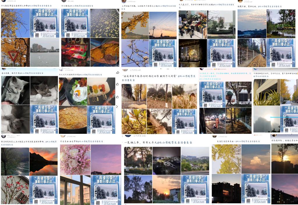 此次“再续冬季”主题摄影分享活动为促进同学间交流与展现冬日校园风采,让大家习惯性记录生活中的美好,提升观察能力和交流能力,远离“社交孤僻”。“冬”给人的感觉是寒冷的,但在“再续冬季”的展示作品中同学们的作品是温暖的、多彩的,他们用各自独特的视角记录下校园“冬”的温情、校园的“冬”的风景。