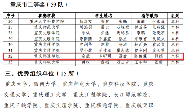日前,“TI杯”2021年全国大学生电子设计竞赛重庆赛区获奖名单公布,我校24支参赛队伍中,获得重庆赛区二等奖1项,成功参与奖17项,同时获得“优秀组织单位”的荣誉。本届大赛重庆赛区在全市37所参赛学校的549个参赛队中,评出重庆市一等奖59队、重庆市二等奖59队。