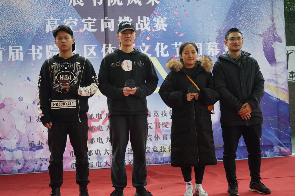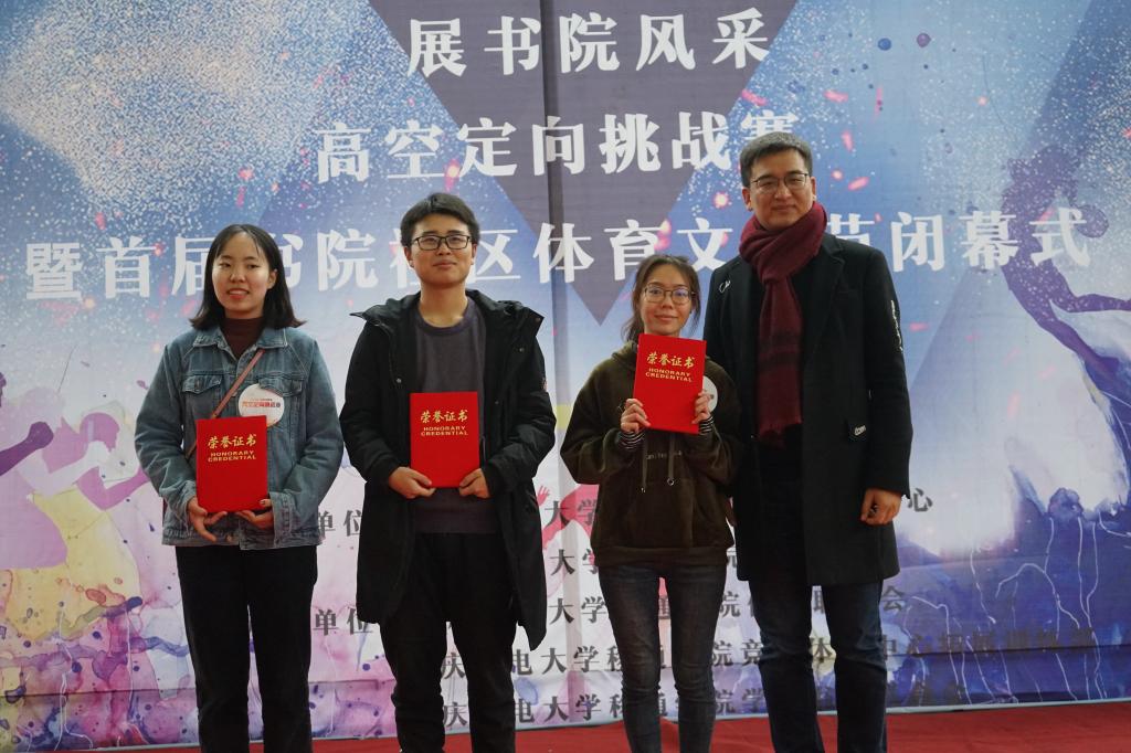 最后,伴随同学们的入场,高空定向挑战赛暨首届书院社区体育文化节闭幕式正式开始,首先由学生书院联合会主席代表王皓同学对本次体育文化节进行了总结。随后公布名次,由竞技体育中心体育活动部主任谈胜老师为高空定向挑战赛获胜队伍前三名颁发奖杯;书院队伍成绩按照开幕式比拼与高空定向挑战赛两场总积分进行排名,书院部副部长穆春江老师为首届书院社区体育文化节团体奖前三名颁发荣誉证书并合影留念。