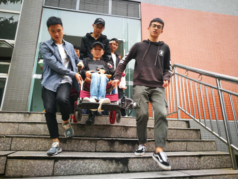 一个晴朗的早晨,支队长汪先伍第一次去接朱洪江上课,也正是那天,春藤小组成立了。朱洪江早早地就和他的婆婆已经在A6门口等候着,那天他面带微笑,身体瘦弱,但却精神饱满,并没有因为自己身体的原因而性格内向,在他的眼神中,充满的是希望与坚持。上学的路程虽然只是A6到教学楼的距离,但风风雨雨,志愿者们和朱洪江同学一起走过。这一路的志愿服务是艰苦的,据汪先伍回忆,有一次他们去接朱洪江上课时,刚开始走就下起了大雨,而他们只有一把伞,于是志愿者们就把伞撑着给朱洪江遮雨,而志愿者们就一直淋着雨送他到教室,虽然衣服湿透了,但是心里却是另外一种快乐。除了平时接送上学放学之外,志愿者们还会在周末的时候去到朱洪江的家中,陪他一起聊天、做游戏,给他的爷爷奶奶带去慰问。
