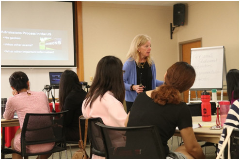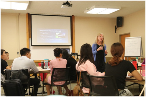 在上午的课堂研讨活动中,她还系统地介绍了美国大学申请流程和本科教育的目标,探讨了大学对学生能力的培养,包括批判性思维、创新能力、交际能力等。Deborah L. Pierce老师的seminar内容丰富、教学方式生动活泼,善于运用丰富的肢体动作和面部表情帮助学理解讲授内容。交流团的同学和老师在课堂学习中兴趣盎然,积极讨论互动,课堂参与热情。