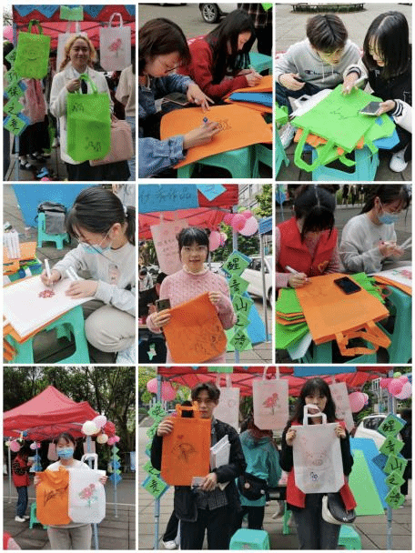 经过环保知识竞答,同学们在脑海中已经有了许多关于环保奇思妙想。为进一步加深同学们的环保意识,让大家以实际行动投身环保,现场进行了一场别开生面的DIY环保袋手绘,通过思维与灵感的碰撞,别具特色的环保标识让人耳目一新。其中,2020级软工7班的同学,一幅翠竹的作品脱颖而出,随后一幅幽菊让在场同学拍手称赞。完成绘画后,同学们纷纷与自己的作品合影留念,并表示会带着所绘制的环保袋继续努力,用实际行动践行绿色校园环保理念。