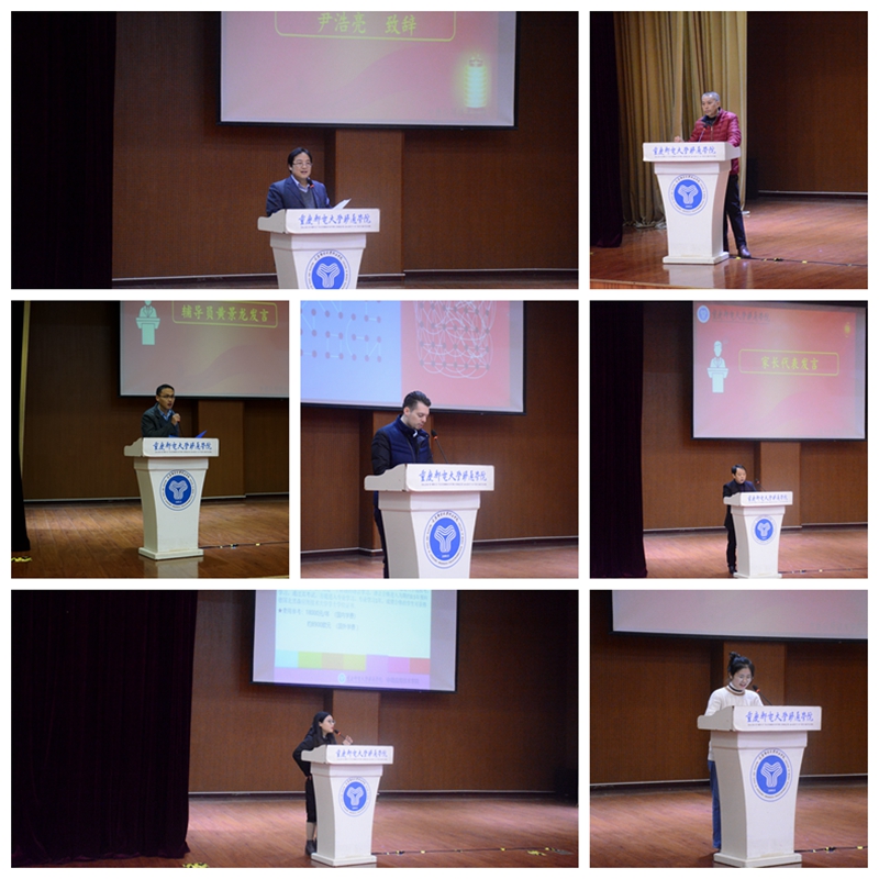 紧接着,2016级的辅导员黄老师和肖老师依次上台致辞。两位辅导员的致辞十分朴素和接地气:大三马上要毕业了,要尽早的确立目标、确定未来发展的方向;家长要听取孩子心声,帮助孩子做好接下来的生涯规划。学生代表的发言,表达了对学校和父母的感激,而家长代表的发言则表达了对学校辛苦培育孩子的谢意和孩子在大学里面慢慢成熟的欣慰。人生就像一场不能回头的旅行,在每一个分叉路口都是一次重要的选择。