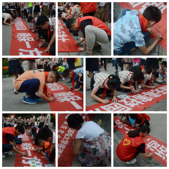 随后,志愿者以精彩的舞蹈形式向小朋友们展现了出毒品所带来血的教训、铁的事实,并告诫市民们要认清毒品的危害,增强自身抵御毒品的能力,树立正确的世界观、人生观、价值观。在活动的过程中,志愿者们向过路过活动现场的人群分发宣传资料同时进行口头教育进行宣传,志愿者们准备的宣传册对毒品的种类及特征进行了详细的介绍,对毒品的危害性加以论述与剖析,并且就如何遏制毒品的蔓延以及预防艾滋病进行了系统讲解。艳丽的文字和图案吸引了大量学生驻足观看,趁此机会,志愿者们对小朋友进行了讲解与教育。此外,现场还设置了横幅签名,200余名志愿者、市民包括小朋友们积极地用马克笔在横幅上签下自己坚决拒绝毒品的留言。