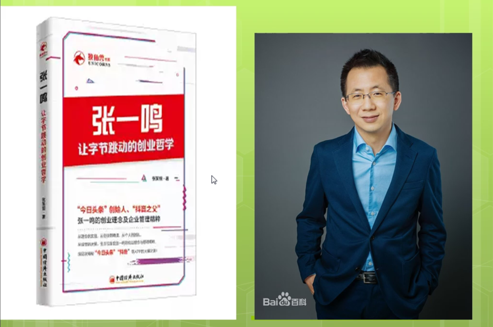 本次大咖阅读分享的书籍为《张一鸣让字节跳动的创业哲学》,本书以“今日头条”创始人、“抖音之父”,字节跳动创始人张一鸣先生的“创业哲学”为主题,从梦想、定力、决策、选人、用人、管理等维度,呈现张一鸣先生的创业情怀、企业发展及企业管理方面的全系统思路与见解。