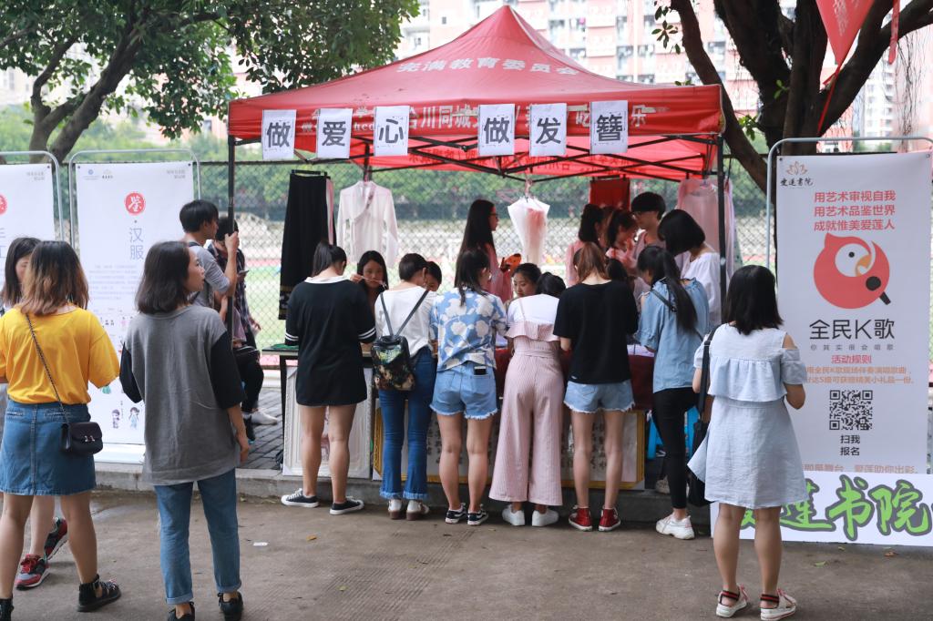 爱莲书院现场与手工艺社、、绿植协会、茶艺社和汉服社携手