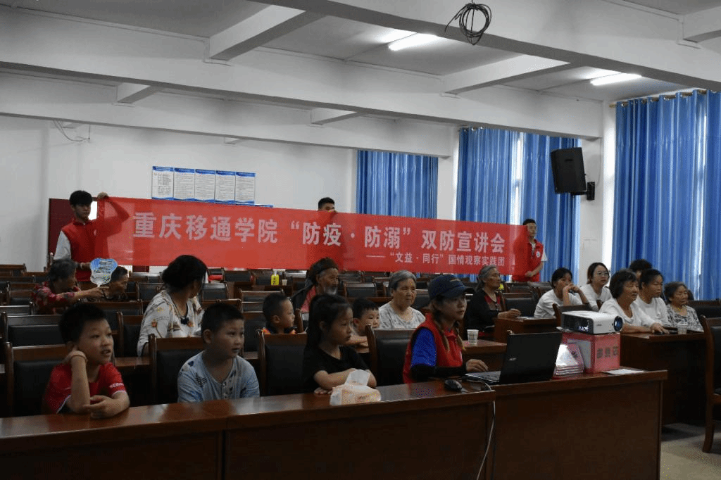 为向村民传达运动健康的生活理念及安全问题,“文益·同行”国情观察实践团成员与当地进士社区工作人员沟通后,开展了一场小型运动会,邀请社区居民参与此次活动,让他们在娱乐中感受健康运动的重要性。为此,我团根据现阶段国家疫情防控要求及苟家村地形生态状况开展“防疫·防溺”双防宣讲会,向村民们宣传双防意识。