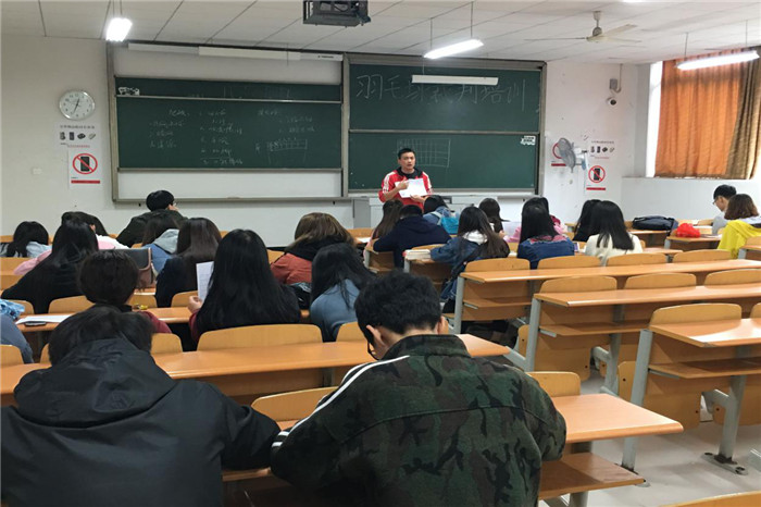 为了进一步推动我校完满教育活力发展,促进竞技体育工作提档升级,实现学生裁判队伍能力提升。学生体育联合会开办了羽毛球裁判员培训班,并于3月30日在教学楼4205,展开了一场羽毛球裁判技能培训。本次活动特别邀请到体育教学部胡垚老师作为主讲人,围绕基础规则、基本技战术、裁判法则、值裁技巧等方面进行裁判能力提升。在专业老师的主导下,本次培训会内容格外生动、气氛活跃,裁判员们认真的记录学习资料,裁判员的专业知识得到丰富,不断促进我校羽毛球运动的健康发展。