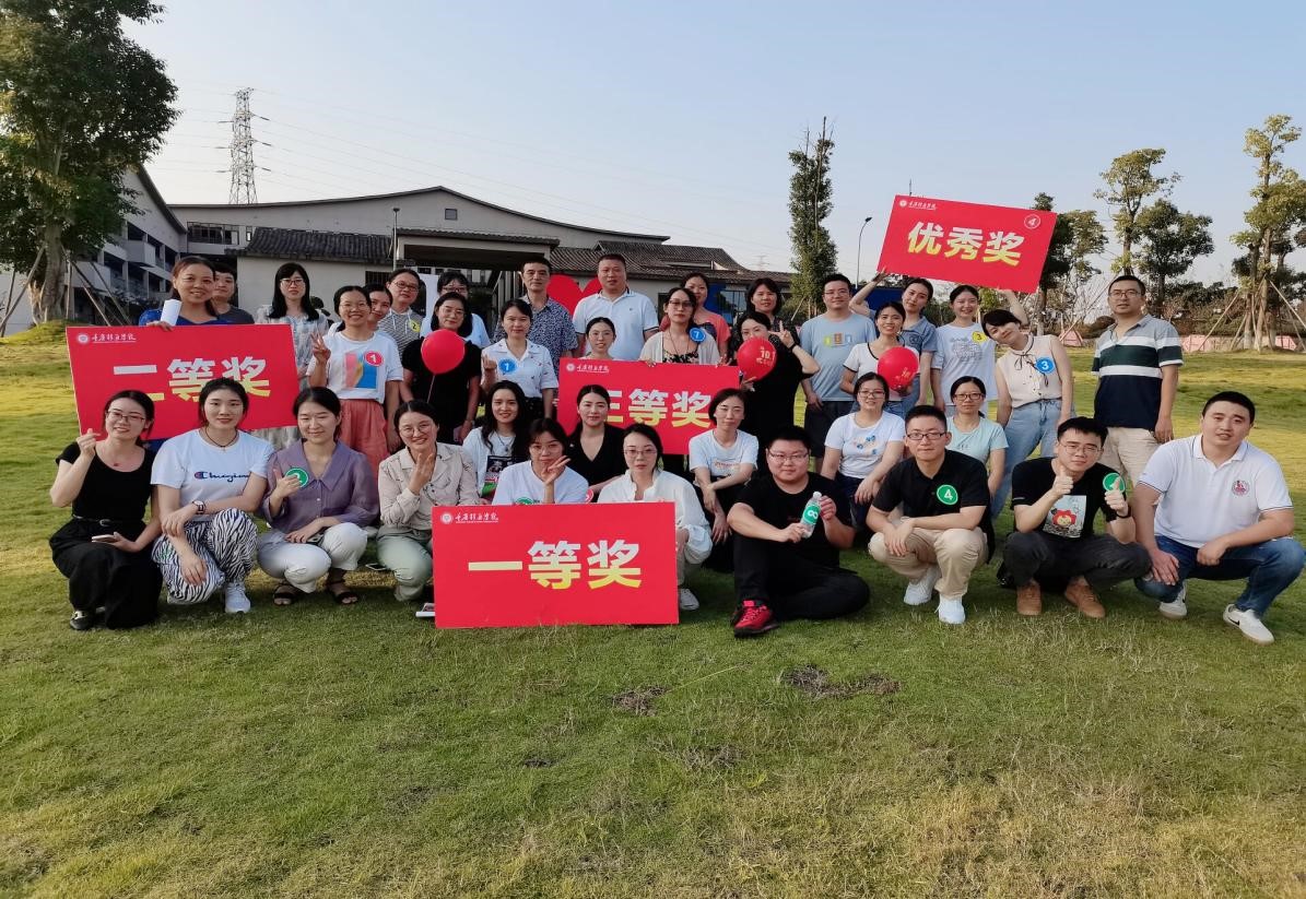 暂时抽身繁忙的快节奏工作生活,一起欢度快乐的时光,同时也为即将迎来的祖国母亲生日表达喜悦与祝贺。在中场休息后,老师们继续参加“背靠背”“袋鼠跳跳”“十人九足”,团队的协作不是一蹴而就,需要磨合与沟通,更需要分工合理。比赛成绩公布后,分别由院长潘显兵教授、副院长刘贵容教授、副院长任瑞娟老师、吴自立教授颁布团队集体奖并合影留念。
