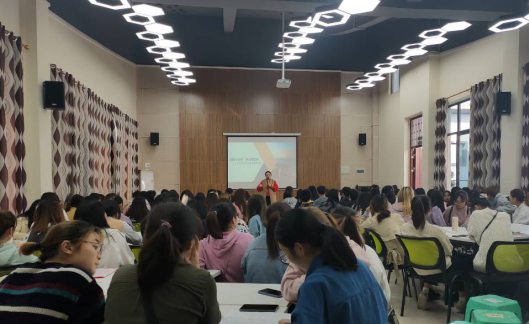 来自远景学院,参加了我校2019年NIU夏令营的张晓梅学姐,给外国语学院2019级英语专业的学弟妹们带来了题为“完满移通,助梦美国行”的主题分享,晓梅学姐从“学”、“爱”、“吃”、“玩”四个方面分享了她在美国的经历和感悟。她先从在NIU的学习经历之课堂互动这一角度,向同学们介绍了中外教学模式的差异,然后又以在美国的日常生活为切入点,向大家介绍了自己向当地人民展示中华传统文化魅力的经历,并与寄宿家庭的“家人”建立了深厚的感情。最后,她重点介绍了在交流期间参与的志愿服务活动,表达了“志愿无国界·大爱永相传”的国际志愿精神。宣讲会现场气氛热烈,学姐讲得神采飞扬,学弟妹们听得津津有味,从大家专注的眼神中可以看出,同学们对出国交流充满了向往。