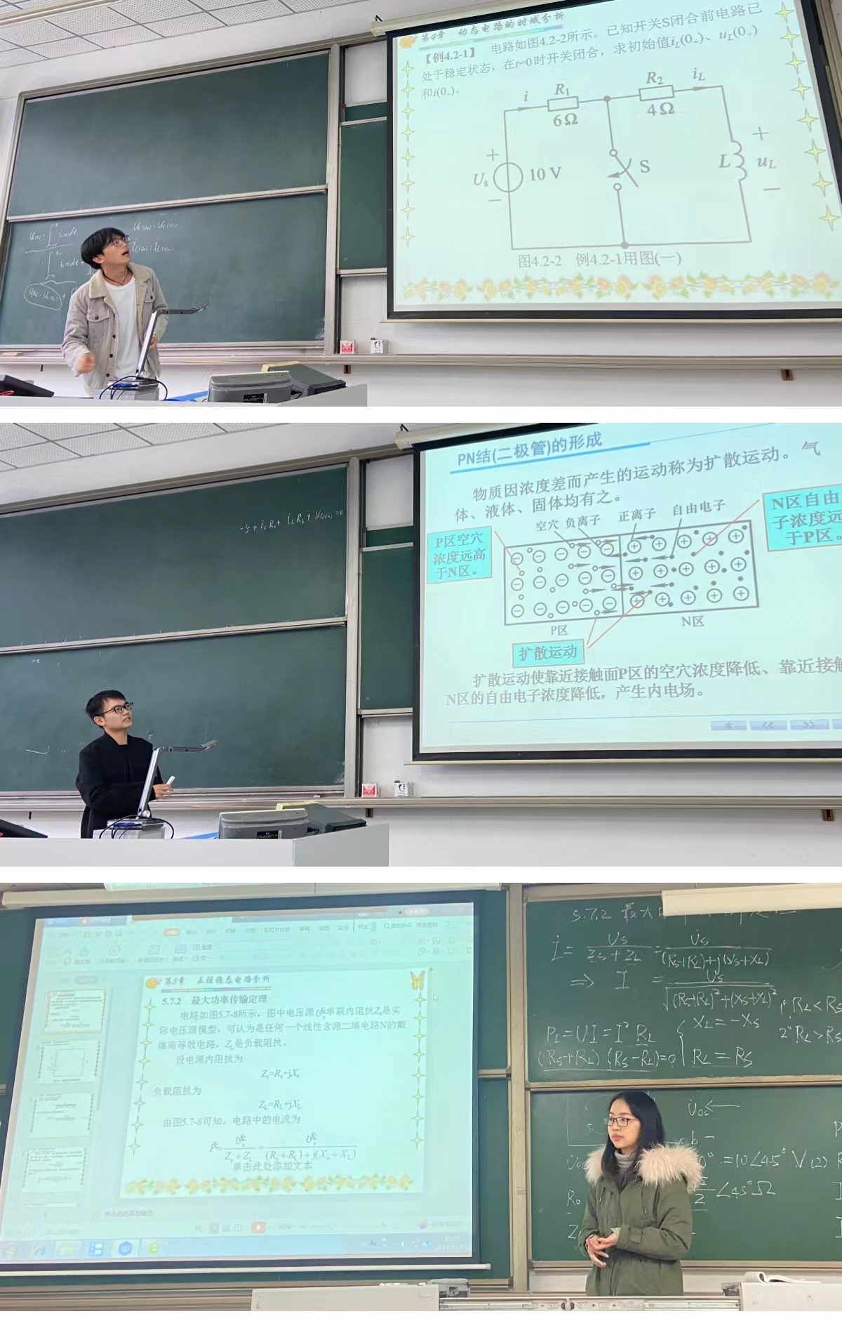 10月20日和11月17日的教研活动上,本学期入职的三位新老师依次进行了试讲活动,其中谭秫毅老师和王紫薇老师分别选择了《电路分析基础》课程中的“动态电路时域分析”和“最大功率传输定理”作为题目,徐玉华老师则以《电子技术基础》课程中的“三极管”为题进行了试讲。试讲结束后,教研室其余老师分别针对三位新老师在试讲过程中展现出来的优点和有待改进的问题发表了各自的意见,同时教研室老师们也针对两门课程的重难点教学内容处理方法和教学手段交换了各自的见解。