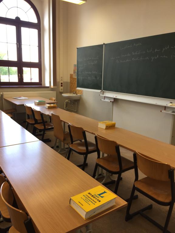 德国老师在讲解语法题目时,并不只单一地涉及到语法层面,而是会讲到句子内容的理解。比如,往往会假设一个语境或者近义词的辨析来启发学生对生词的理解。除此之外,德国老师非常重视字典的作用,反复跟学生强调要多查字典。在教室里也总是放着几本字典随时供学生使用。