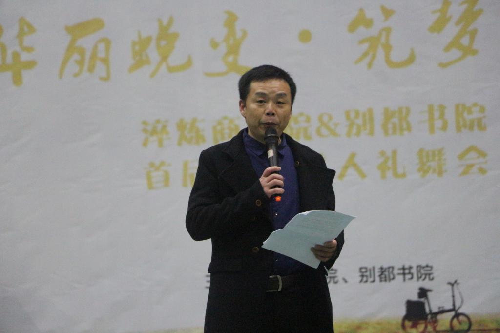 本次舞会,还特别邀请了淬炼商学院2018级尹王哲同学的父亲潘国清先生来到了舞会现场,潘国清先生代表全体学生家长,为全体同学送上了爱与祝福、鼓励与期待,希望同学们能够保持健康与快乐、勇于拼搏敢于担当、能够正视困难与挫折、学会感恩与敬畏。
