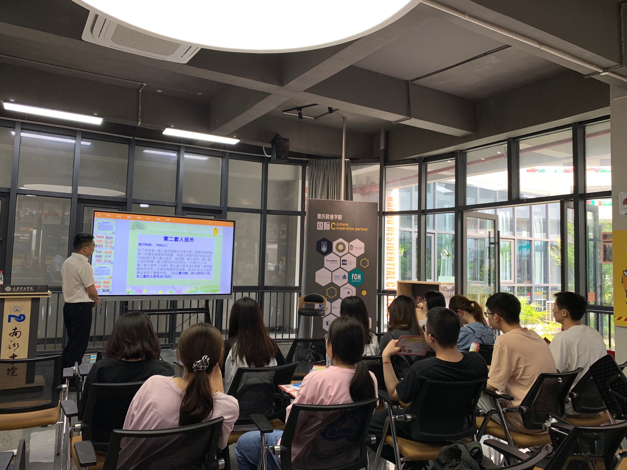 为增强银行储蓄、纸币识别、金融犯罪等知识,提高防骗意识,积极响应学校反诈宣传工作,异科导师胡宗容、罗小霞老师于4月20日上午在南湖书院国际文化展厅进行“增强金融知识,提高反诈意识”为主题的金融知识与反诈宣传活动,此次活动由罗小霞老师主持,特别邀请到重庆银行的工作人员谢弦进行讲解。