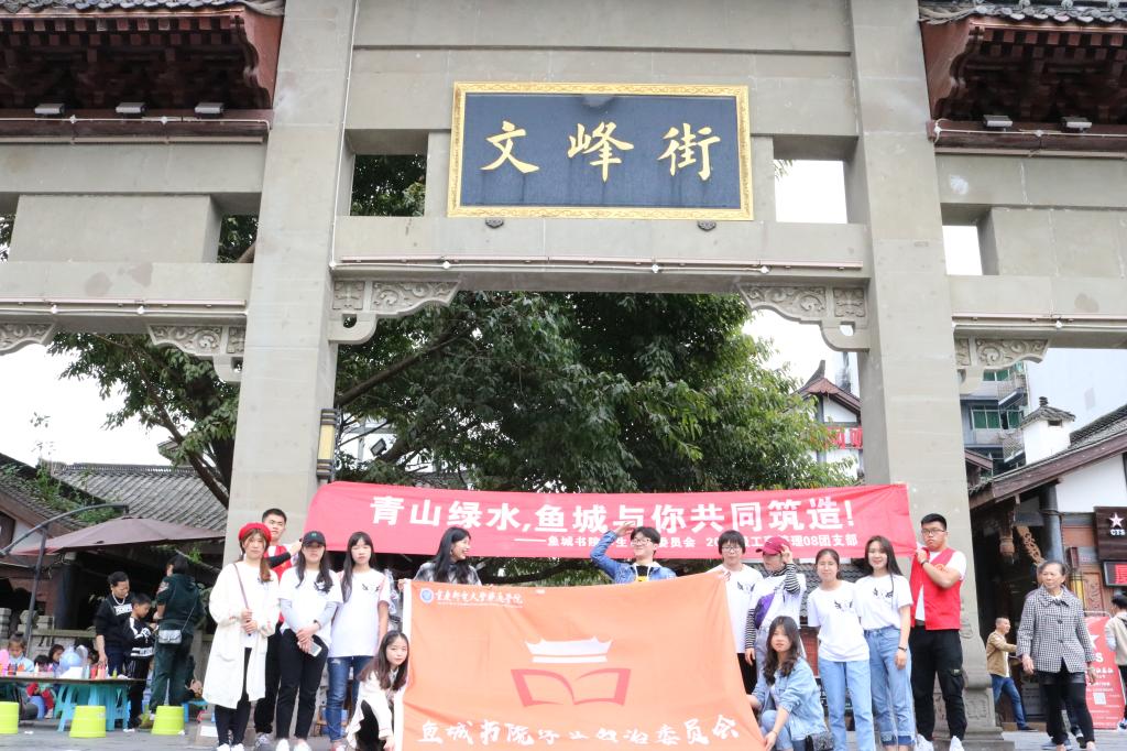 习近平总书记在党的十九大报告中指出:“必须树立和践行绿水青山就是金山银山的理念”,并明确要求“加大生态系统保护力度”。十九大报告提出,我们要建设的现代化是人与自然和谐共生的现代化。人与自然是生命共同体,人类必须尊重自然、顺应自然、保护自然。作为当代青年我们需要深感肩上的责任,关注生态环境,保护地球。节约资源、保护环境是我们共同的使命,还自然以宁静、和谐、美丽,是我们共同的心愿。在新时代号召,加强生态文明保护的大背景下,为推进班团一体化发展,加强书院与班级团支部活动交流。2019年3月30日鱼城书院携手2018级工商管理08团支部迈出校园,走进重庆市合川区卢作孚广场、滨江路进行了“绿色之家 环保之行”志愿环保活动。本次活动旨在着力提升团支部的自身建设,提升团员青年综合素质,增加当代大学生主人公责任感增强团支部凝聚力,增强对书院的认同感与归属感,同时为国家环保基本国策奉献绵薄之力。
