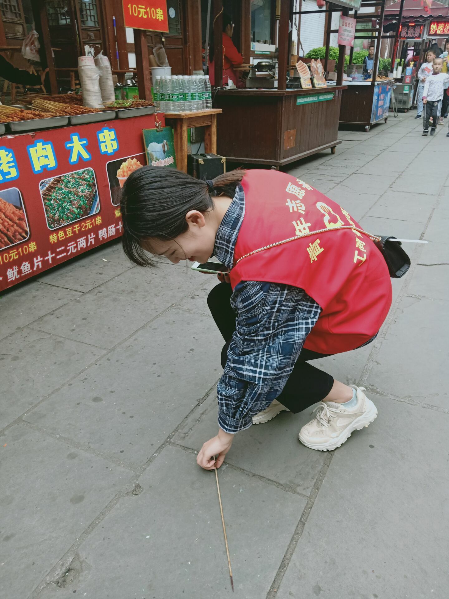 到达文峰古街后,鱼城书院与08团支部一起在现场进行了志愿环保宣讲活动,向当地商家与游客进行环保宣传,向市民讲解环保知识。同时热心公益的志愿者们身体力行,在古道街道捡起游客们脚下的垃圾,帮商家们的垃圾进行分类处理。穿着红马甲的志愿者们身体力行的行动,不仅让商家与游客们看到了同学们对环境保护付出的行动,同时也让他们意识了当代大学生对环境保护所秉持的坚定信念。不少市民与游客更是对此次活动以及志愿者们表示出赞赏与肯定。