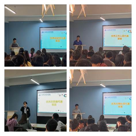 开幕式方阵表演取得第一名是我院方阵代表队不知疲惫的编排训练而获得的荣誉;学生组团体总分第二名是运动员们拼尽全力,工作人员各司其职取得的傲人战绩。王琦老师表达了对所有同学们辛苦付出的肯定,项目缺人,主动请缨报名参赛的运动员们,中途受伤依然坚持完成比赛的运动健儿们,他们的团队精神,集体荣誉感,以及永不言弃的竞技体育精神,更值得我们铭记。