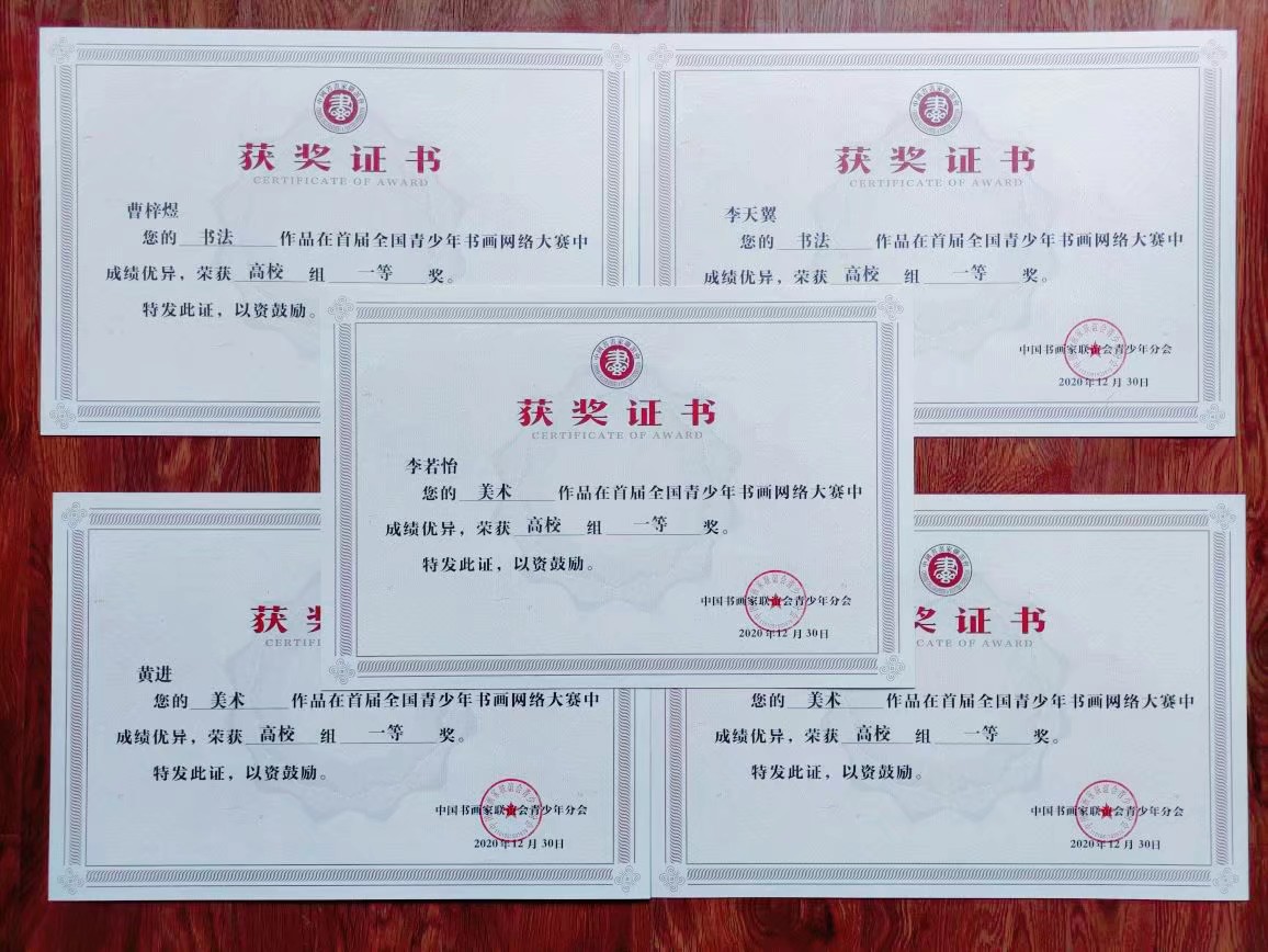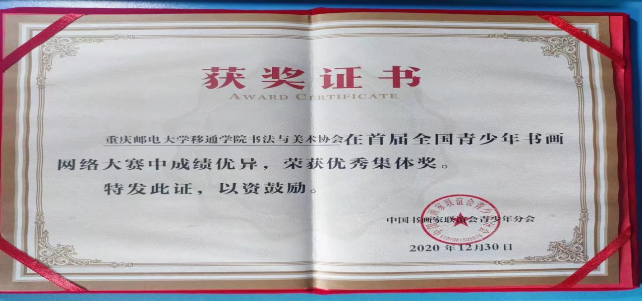 正因为这一颗颗闪耀的小星星,带动着社团成员共同努力,书法与美术协会在本学年各项书画比赛中都取得了优异的成绩。在“墨绘鱼城史·笔抒鱼城情”钓鱼城历史文化博物馆书画作品征集活动中,书法与美术协会揽获荣誉一等奖一名,二等奖和三等奖各两名,优秀奖十二名;在首届全国青少年书画网络大赛中斩获了重庆市内唯一的优秀集体奖,并创下获得国家级奖项社员人数的新高。