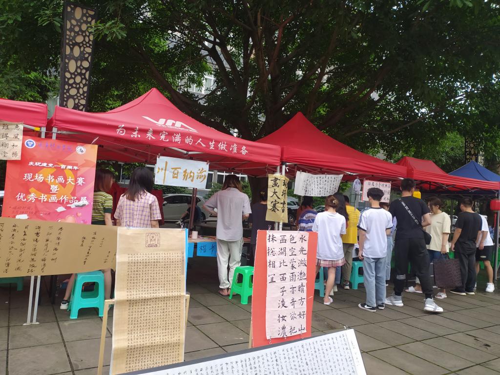 过去的一年,我们从无到有。书法是中国所特有的一门视觉艺术,它具有语言文字的实用价值,同时也具有审美的艺术价值,两者构成了书法艺术的双重特性。本学年,书法与美术协会共开展14次传统文化精品课堂,组织和参加完满教育活动24次,所承办的校级活动参与人数皆百余人次。其中,在合川区书法家协会指导下,承办“墨趣飞花令”创新书法打卡活动,参与人数高达700余人次。此外,传统文化精品课堂设置专属课程,上课内容按照汉字“篆隶楷行草”的演变顺序进行教学,课间穿插简单国画与书法理论知识提升课堂趣味性,参与人数由前期的30余人增加到中后期的70余人次。同时社长与教学部成员积极备课,充实有趣的课程内容,社员们的互动交流,让更多同学感受到了书法的魅力,爱上书法且坚持学习下去。