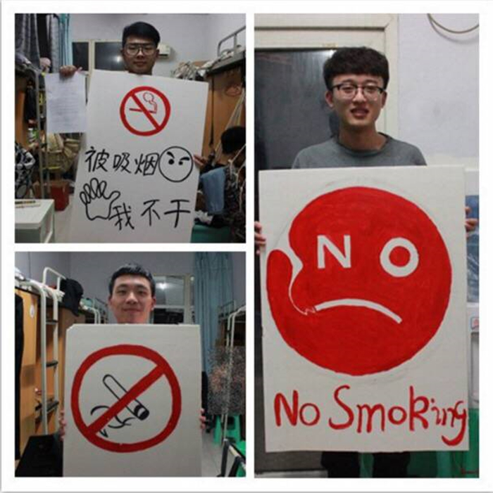 在各种方式的大力宣传下,移通学子积极参与控烟活动,制作控烟海报,更有吸烟大学生自觉阅读《创建无烟校园倡议书》,主动参与控烟,给身边的人创造一个健康的学习、生活环境,为营造无烟校园、建立清新美丽环境贡献自己的力量。