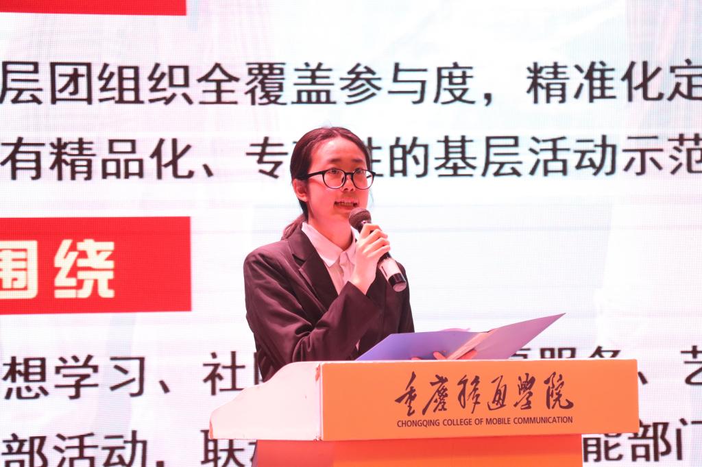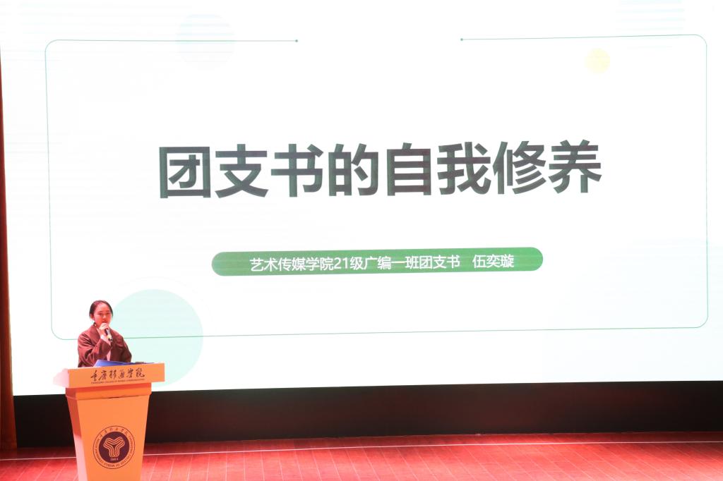 合川校区艺术传媒学院2021级广播电视编导01团支部团支书伍亦璇同学以《完超的任务拆解法则》为主题进行分享。通过“专人专用”原则积极推动完超活动有序开展,达到1+1>2的显著效果;通过支部+特色单位组合,合力搭建展示平台,积极彰显支部特色文化风采;通过“主心骨+团队”原则,全力打造一只高质量的完满超级团支部。并分享到一次完超活动的举办从策划到开展的过程能极大的锻炼班团成员的决策力、组织力、领导力。