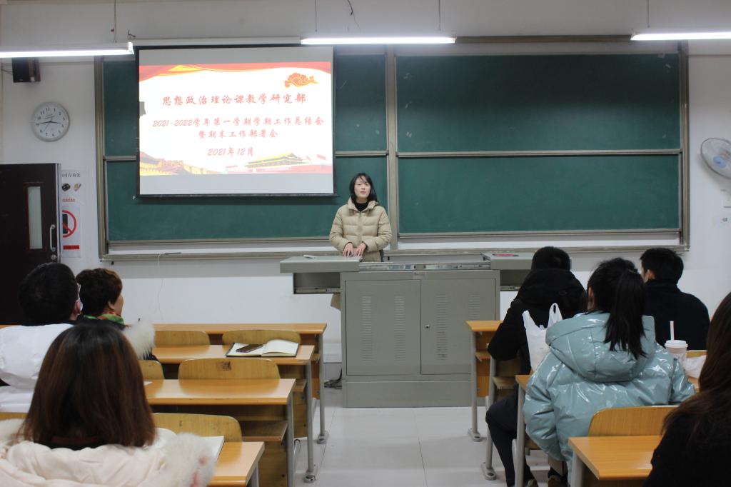 精彩纷呈的2021年即将过去,充满期待和希望的2022年即将到来,12月29日下午,思政教学部在1210教室召开了年度教学工作总结会暨期末工作布置会,会议由教学部主任邓燕主持,全体思政教学部教师参加。