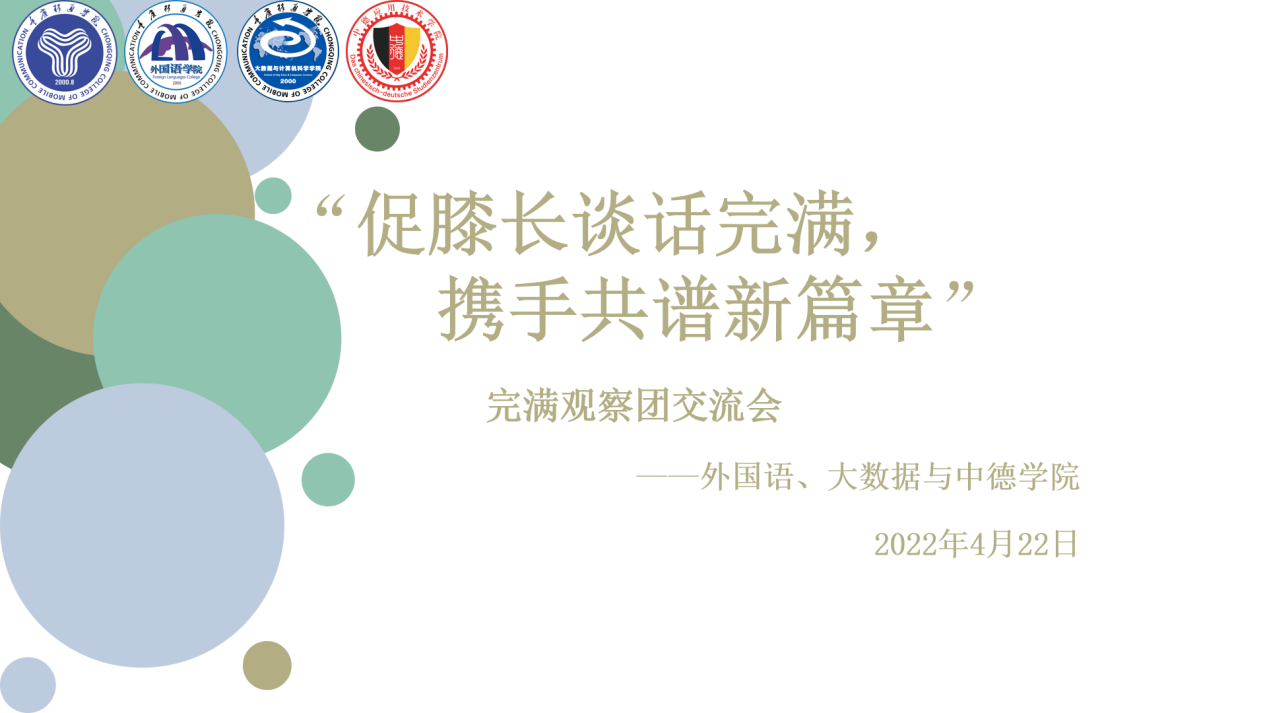 完满观察团作为检测完满教育活动质量不可或缺的一环,团队建设、思想觉悟以及综合能力尤为重要。为此,外国语学院联合大数据与计算机科学学院、中德学院于4月22日中午13:00在爱莲多功能会议室展开“促膝长谈话完满,携手共谱新篇章”——完满观察团交流会。促进学院与学院完满观察团之间的交流与合作,解决成员们在工作中遇到的实际问题。此次会议邀请到大数据与计算机科学学院完满观察团指导老师彭崇清老师、徐瑞城老师,外国语学院完满观察团指导老师屠建丽老师。