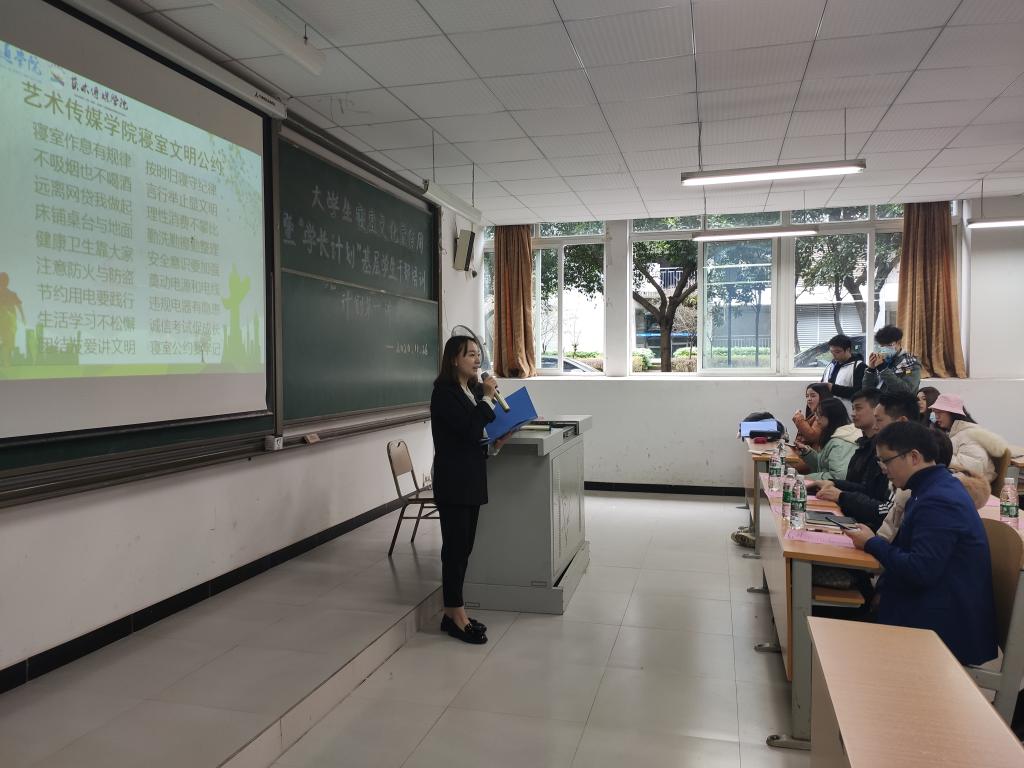 随后,由生活权益部部长王艺静同学带领大家宣读和发布《艺术传媒学院寝室文明公约》,提议全体同学响应倡议,共同遵守约定,一起打造美好寝室生活。
