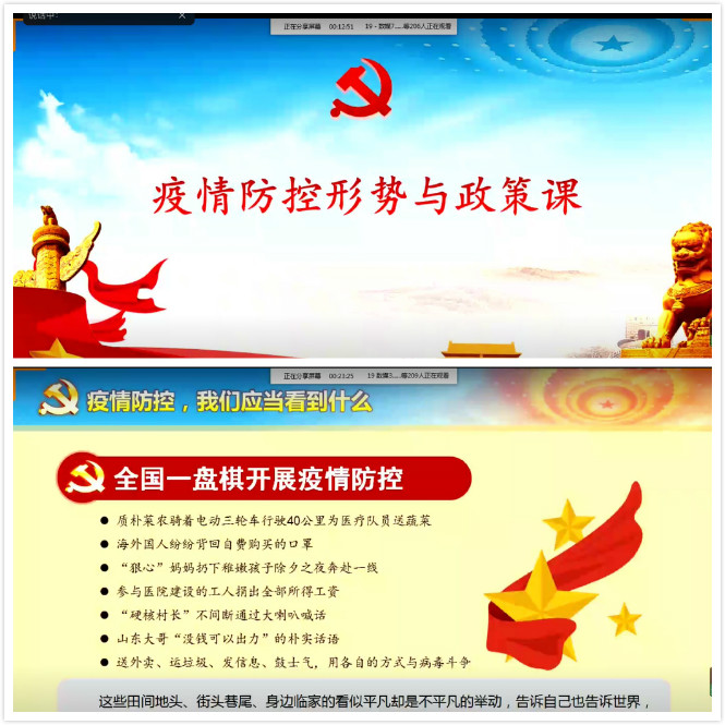积极开展疫情防控形式与政策解读,引导广大青年学生正确认识疫情防控过程中我们党的政治优势、组织优势、密切联系群众优势转化为疫情防控的强大政治优势。及时开展校园疫情防疫知识,提醒广大学生时刻注意个人防护,帮助学生了解应急处置程序。上好“开学第一课”,努力营造疫情之后安全、和谐的校园环境;做足防疫“功课”,从思想上、日常学习生活上,统一防控认识、坚定抗疫决心,切实按要求做好学校各项疫情防控工作。