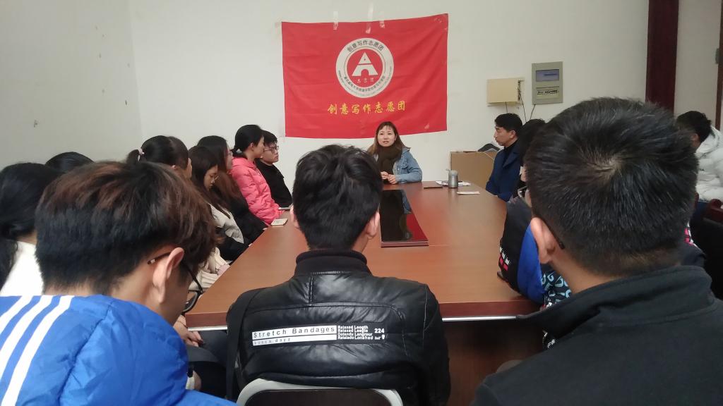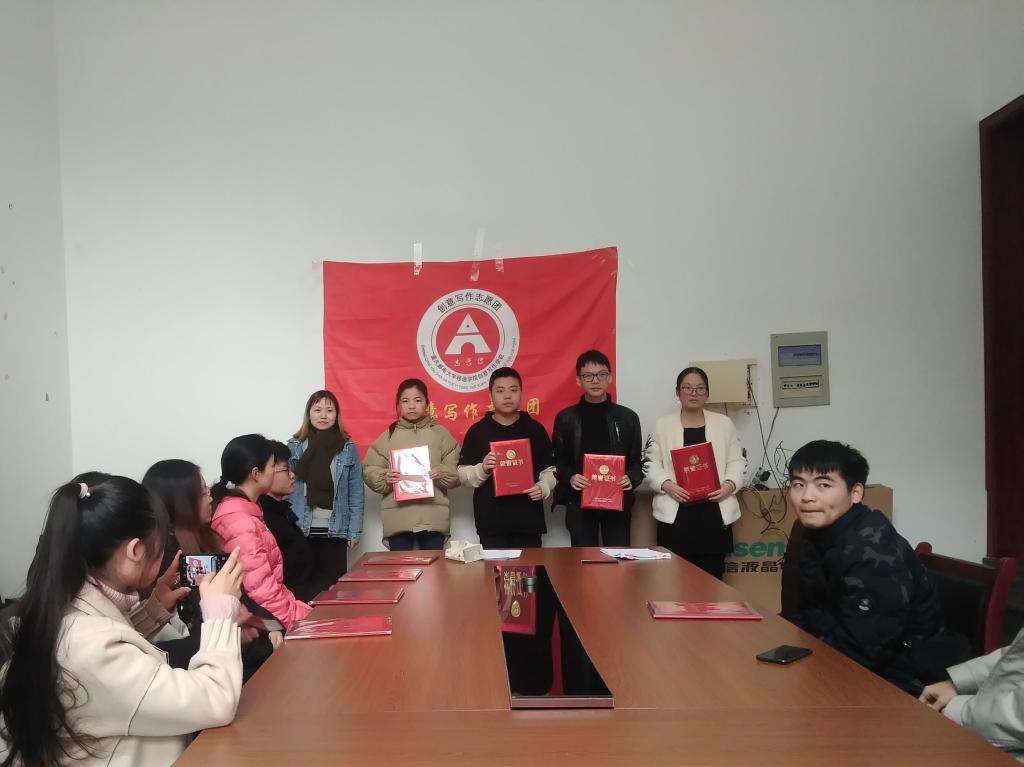 志愿团团长林鸿宇也指出,创意写作志愿团本学期存在的问题以及志愿团未来该如何发展。团长发言结束后,由志愿团的各个部门的部长、干事轮流发言,各自讲述志愿团的感受以及在志愿团里的收获,用语言与行动诠释了“we are family——创意写作志愿团”。接下来就是对优秀部长和优秀干事进行表彰颁奖,以资鼓励。本次活动到处圆满结束,最后志愿团全体成员合影留恋。
