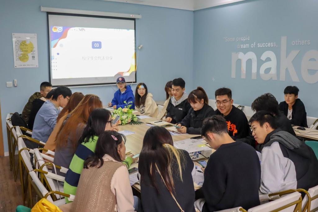 在学生代表的会议中,三校学生代表分别进行了工作方面的分享,青联主席蒋士泉分享了由同学先体验后参与的工作方法,得到代表们的认同;社联主席钟玉寒进行灯塔学生负责人培养计划和绿色社团联盟的讲解,赢得了代表们的掌声;校学生会主席陈熊源讲述了部门的考评细则和要进行定期的考核,并会日渐深化学生会的改革;轮到团委学生代表分享时,校团委学生副书记王安浩文不仅进行了青马工程初阶、中阶、高阶三班的培训分享,而且讲述了大咖阅读计划和完满超级团支部的联合计划。当学生代表们进入自由讨论时间时,泰山科技学院的学生代表提出了关于权益部方面对于有些问题无法得到学生理解的问题,我校的学生代表针对这一问题提出了加强权益部宣传力度和提升学生们对权益部的了解的解决方法,得到了学生代表们的支持与赞同。随着热烈掌声的响起,本次晋鲁渝三校团委师生代表交流大会也走向了尾声。
