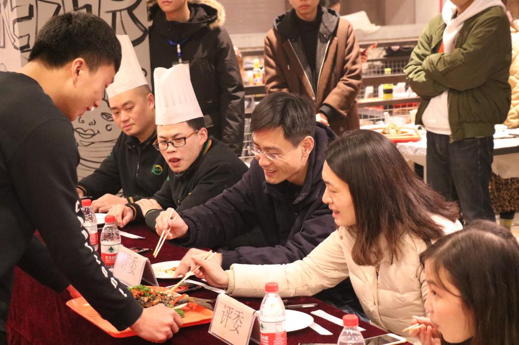 “炊金馔玉,舌尖争霸”,以中华传统文化元素贯穿始终,312支报名队伍、1300余名参赛选手,在体验、实践、乐趣的同时体会到中华美食文化之美。2018年12月12日,在重庆邮电大学移通学院王征副校长、校长助理周伟老师、教职工委员会组织委员姚黎华老师、美食协会指导老师付梦竹老师、美食元素食堂厨师代表的见证下,第九届校园创意厨艺大赛决赛落下帷幕。这是一次创意的厨艺之旅,这是一次美食的神奇汇聚,这是一次奇特的饕餮盛宴。