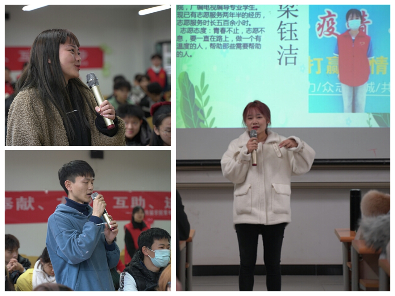 最后,艺术传媒学院青年志愿者协会指导老师黄小梅老师对此次培训活动做了总结发言,将“奉献、友爱、互助、进步”的志愿者精神做了解读。志愿服务,并不需要轰轰烈烈的壮举,志愿服务是困难时向别人伸出的援手,志愿服务亦是给予他人的微小帮助。只要心怀大爱,即使一个小举动,即使一件小事,也是志愿服务,也能够温暖人心。