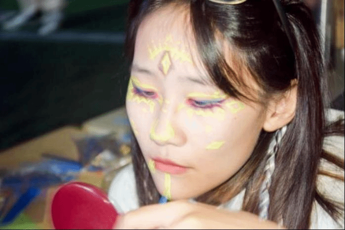 活动当天下午四点,工作人员就已到达D区足球场开始为彩绘活动做准备。搭帐篷、搬桌子、摆颜料、洗画笔,工作人员细心地将同学们所会用到的物资准备好。待一切工序安排结束,工作人员为同学们打了头阵,他们拿起画笔为自己画上喜欢的图案,不仅为活动起了宣传作用,吸引同学自由创作,也展现了自己的独特风格。