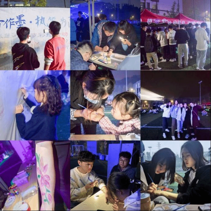 如果说世界上真有一种语言是无论时空、种族、国界都能懂的,毫无疑问,那就是音乐。但如果再给音乐加上色彩,又会是怎样的情况呢?为了响应2021年“大学城•钓鱼城”国际音乐节(合川校区)的开展,大数据与软件学院于2021年10月25日晚上6点,于D区五人制足球场开展了“引音作墨·执笔为画”帐篷音乐节彩绘外围活动,本次活动将色彩与音乐相结合,以视觉上的冲击带大家一同感受这奇妙的视听盛宴。