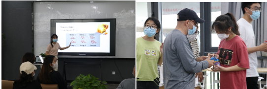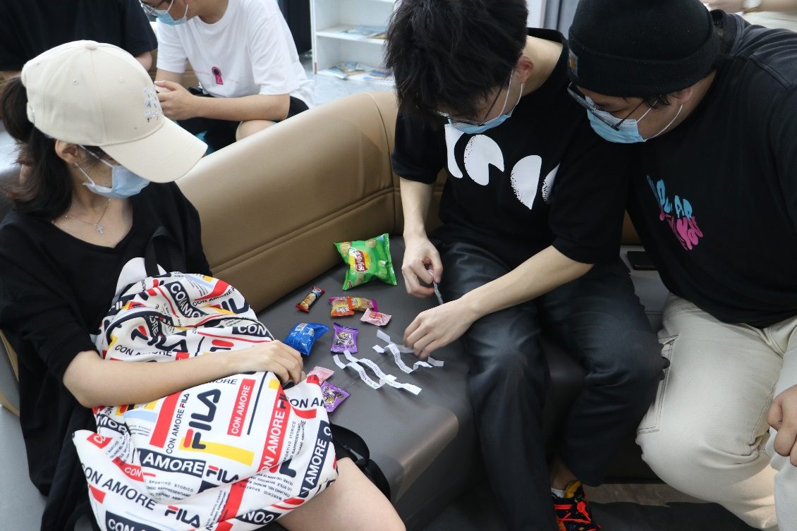 简短的破冰小活动后,绕口令趣味挑战正式开始。首先,田老师向大家介绍了第一轮游戏规则,每一个小组对应一个标记,需要在现场的各个角落找到带有标记的物品。随着一声令下,同学们纷纷起身在现场进行“寻宝”,并根据自己所找到的物品与别的组进行物品交换。