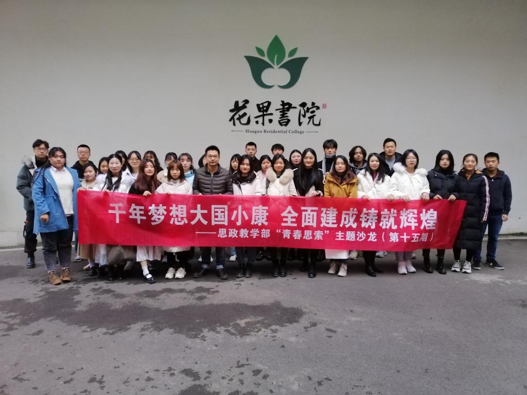2020年是决战脱贫攻坚,决胜全面建成小康社会的收官之年。千年梦想,照进现实,根本在于我们党从初心使命出发,带领中国人民走出一条寻梦、逐梦、圆梦之路。为引导青年学生增强责任意识和使命感,努力培育和践行社会主义核心价值观,传承伟大的创造精神、奋斗精神、团结精神、梦想精神,为实现中华民族伟大复兴中国梦不懈奋斗。思政教学部政治理论教研室于12月9日下午4点在花果书院多功能活动室举行了以“千年梦想大国小康 全面建成铸就辉煌”为主题的第十五期“青春思索”主题沙龙活动。政治理论教研室全体教师及30余名学生代表参与了本次活动。