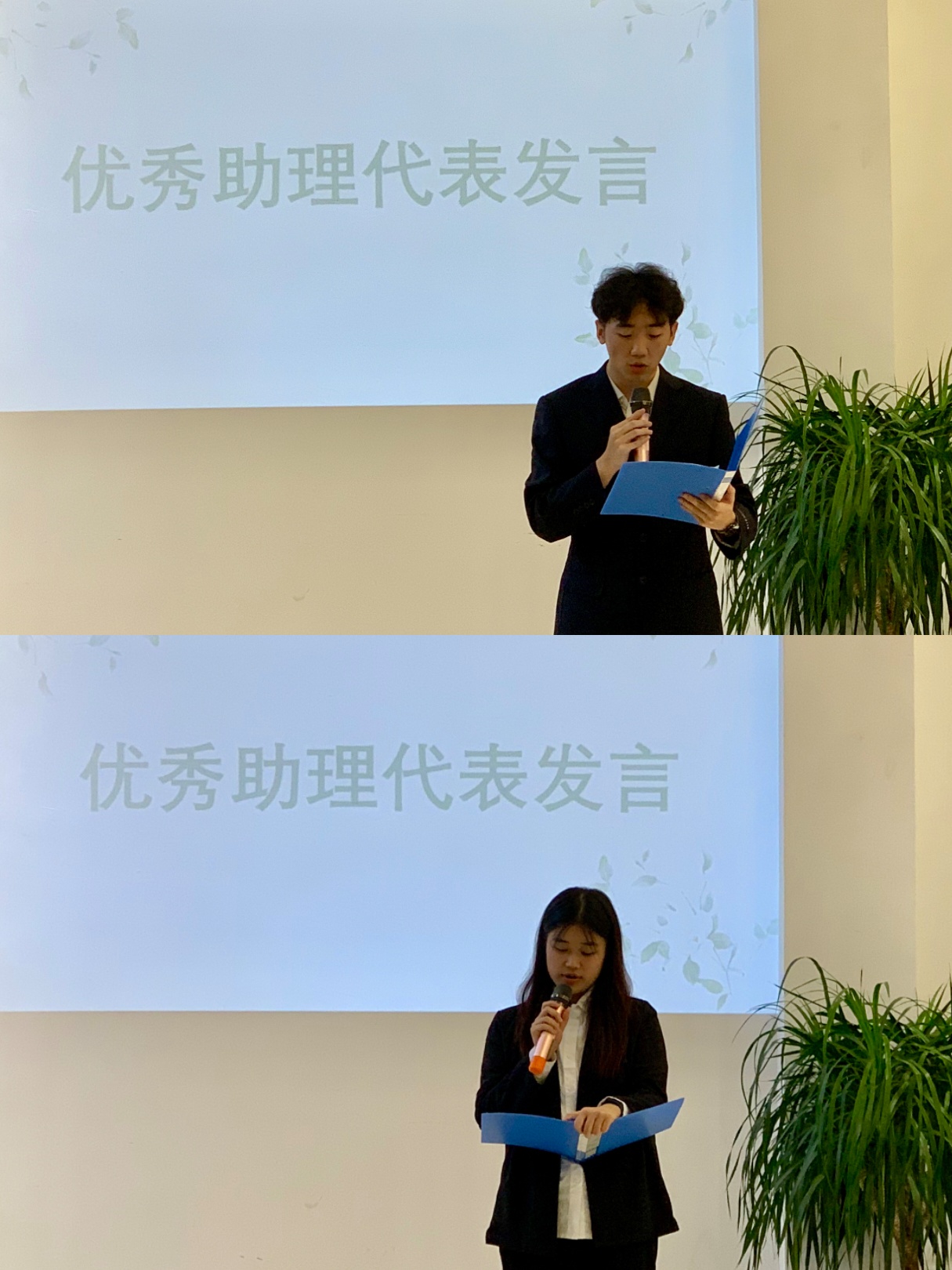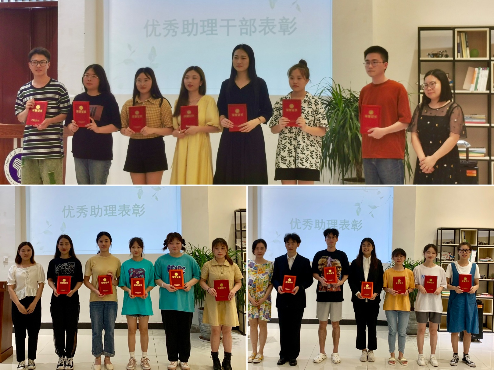 这一年是收获满满的一年。三位老师分别为本学年优秀学生助理、优秀学生干部颁发了荣誉证书。这一张张证书见证了大家的成长,为每一位同学在本学年的付出给予了肯定。“分别即将到来,但我们友谊长存,在这一年里所结交的知心朋友,所收获的师生情谊,都将助力我们更好的前行!”优秀学生助理代表王一诺和刘雨轩分别上台分享这一年的收获和感悟。