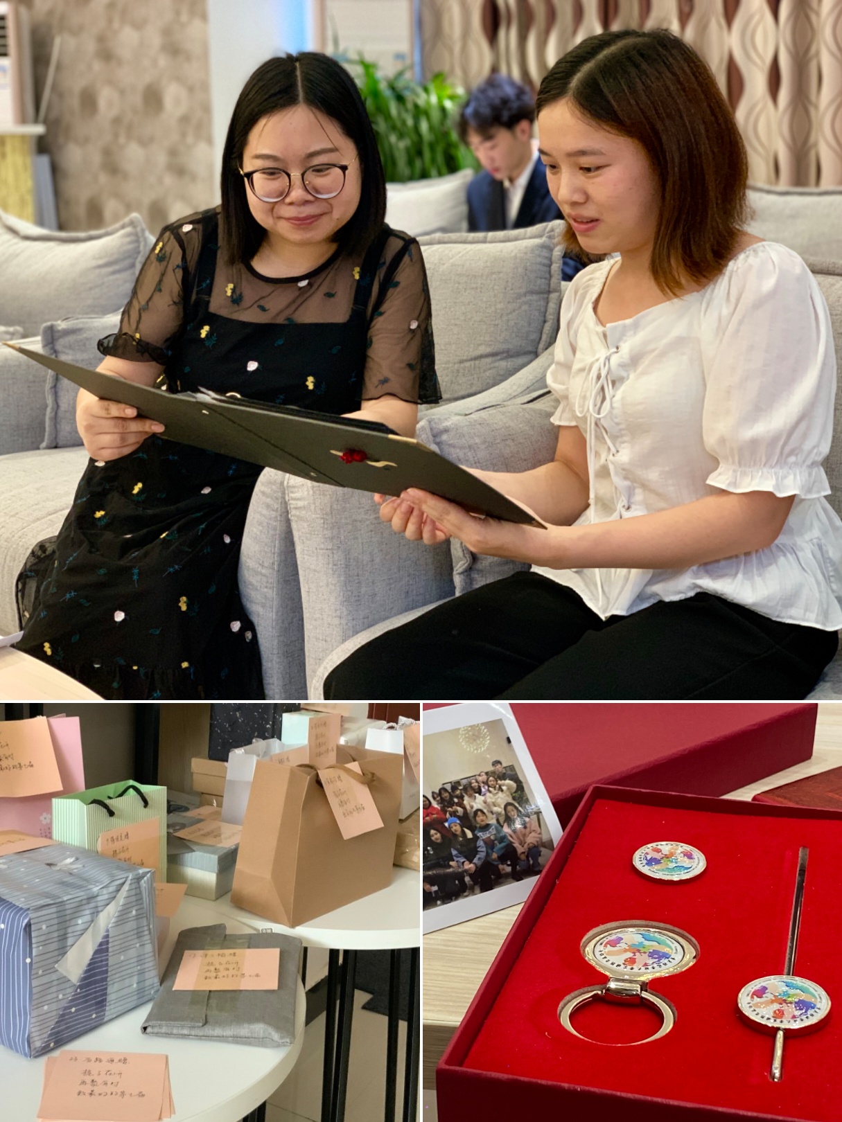 这一年是相守相知的一年。在特别企划环节中,陪伴了一年的小伙伴们为彼此准备了一份代表自己心意的礼物,采取现场抽签的方式进行互送。同样,国际处的老师们也为每位成员送上了一份国际处独一无二的纪念礼物,祝愿同学们学业有成、前程似锦;助理团的同学们为老师们献上了用心准备的一本相册,它记录着国际处开展的每场活动以及同学、老师们这一年在国际处相处的点点滴滴,“相册还有很多页没写,因为我们的故事未完待续,还需要以后加入到这个团队的小伙伴们去续写”。