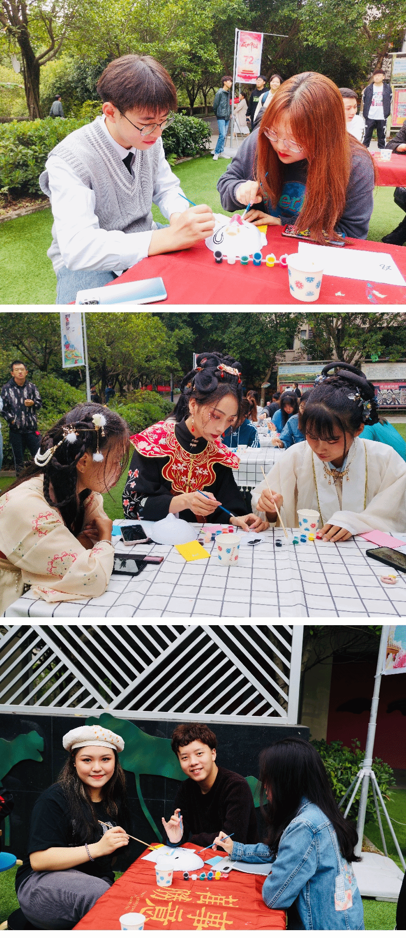 绘画结束后,创作的同学们也一一展示自己的绘画成果,不论是绘画风格还是设计理念充分体现出当代青年大学生勇于创新的性格,爱莲书院与思政部的各位在场老师以及同学们纷纷鉴赏风格迥异的脸谱作品,他们根据脸谱的完成程度、讲解内容、设计理念等环节做出评分,对他们心目中最喜欢的脸谱作品投出宝贵的一票。工作人员通过票数统计最终选出了获票数最高的几幅作品,此时汉服社的成员也早已迫不及待,他们穿着漂亮的汉服为票数较高十一幅脸谱作品进行展示走秀,配合他们的服饰和精致的妆容,一幅幅新颖的作品以独特的形式映入眼帘,给在场的同学们留下了深刻的印象。