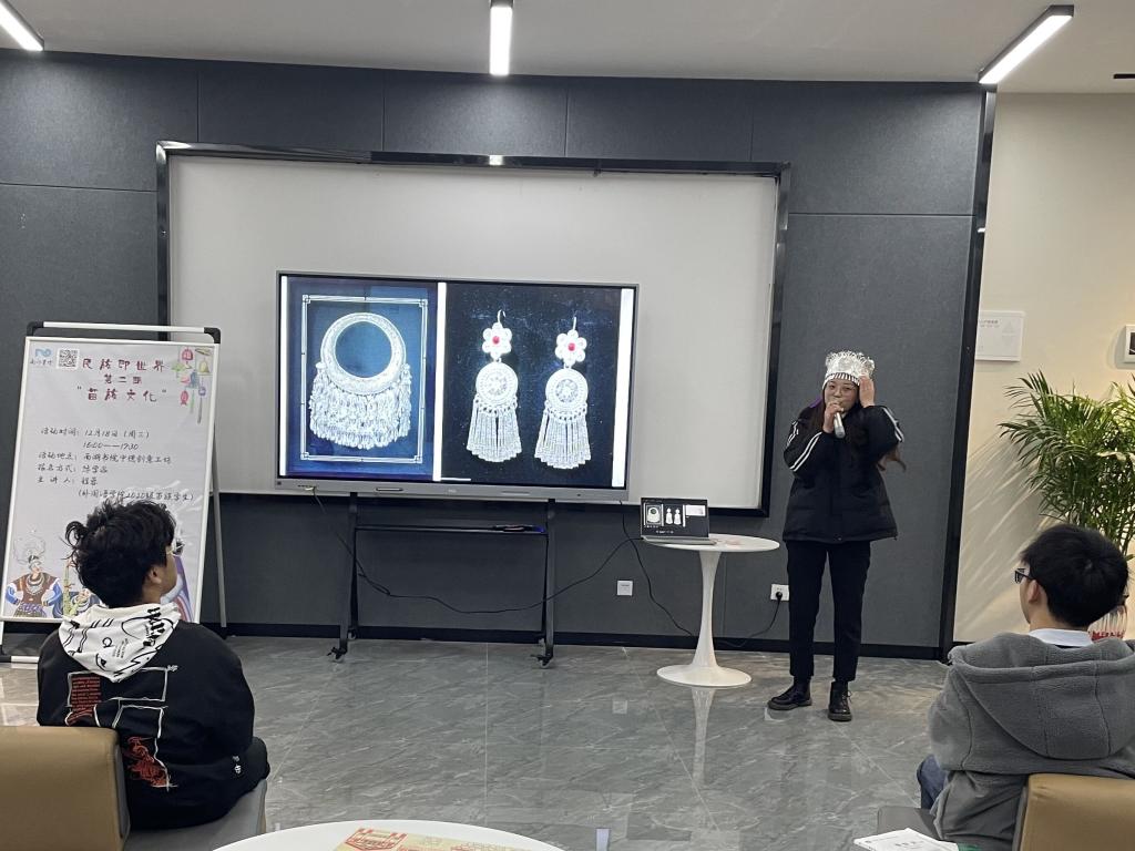 12月10日下午,南湖书院民族即世界第二期《苗族文化》在中德创意工坊顺利开展,活动邀请到来自外国语学院2020级的苗族同学程蓉主讲,带领大家共同了解苗族文化、探讨苗族文化宣传传承的创新发展。
