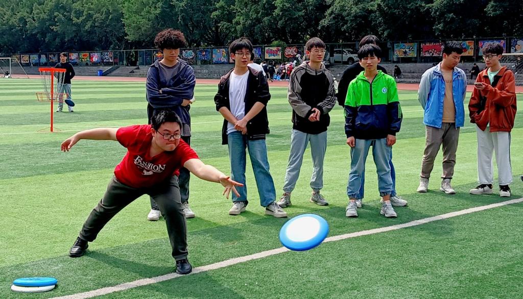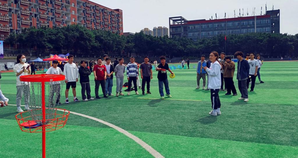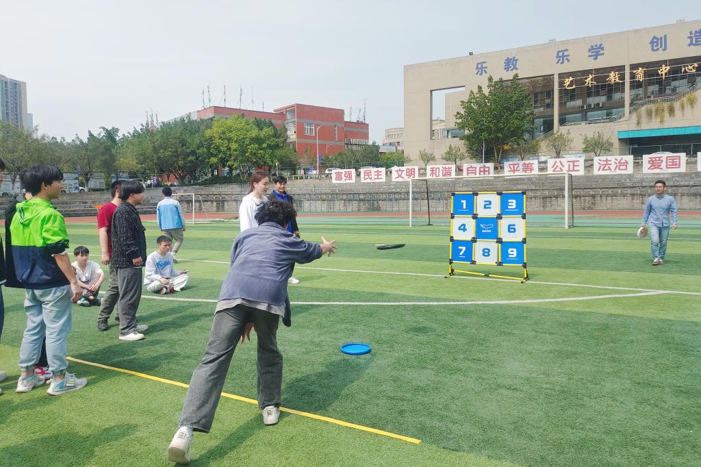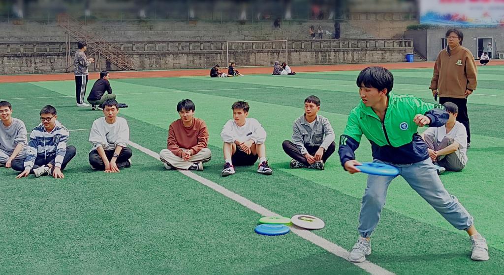 极限飞盘本着“尊重、理解、服从”的精神,是一项具时间、趣味、娱乐、竞技于一体的新兴休闲有氧健身运动。继首届专业化极限飞盘挑战赛举办过后,为进一步培养学生常态化运动兴趣,提高身体素质,通过飞盘这项潮流运动与不同圈层碰撞融合,让师生在极限飞盘的运动中组建运动共同体,体验团队竞争与合作。本着资源最大化使用的焕新原则,鱼城书院联合营地中心,结合“全生异科导师”工作,力求“错位不重叠、价值最大化”,以“飞盘”为切入点,在南校区运动场开展了本次趣味飞盘赛,异科导师曾佳老师、王尚傲老师、鱼城书院金鑫老师和所带学生来到绿地,通过飞盘知识讲解、基础训练、飞盘保龄球、飞盘高尔夫、飞盘九宫格五个环节与同学们进行了一场酣畅淋漓的奔跑与角逐,尽情享受运动的快乐。