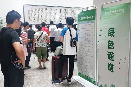 家庭经济困难新生在“绿色通道”可以咨询学校的资助政策,办理缓交学费手续,先完成报到,然后根据经核实的家庭经济情况享受国家助学贷款、国家助学金、困难学生补助、勤工助学等不同的政策,让这部分学生在学校安心的学习和生活。已经办理助学贷款的同学,迎新工作人员现场为他们录入回执检验码或办理学费缓缴手续。截止到9月2日,在已经报道的5500余名学生中,有1345名学生通过“绿色通道”办理入学手续,约占新生入学总人数的24.5%。