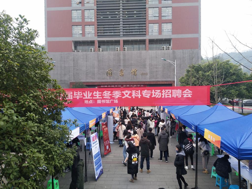 面对与日俱增的就业竞争,为了给毕业生们提供更好的就业平台,帮助企业寻找人才,并且更好的促进我校2019届毕业生顺利就业。2018年12月14日上午10:30由就业创业指导与服务中心主办,外国语言文学系、淬炼商学院、艺术传媒学院和远景学院共同承办的重庆邮电大学移通学院2019届毕业生冬季文科专场招聘会在图书馆广场举行。